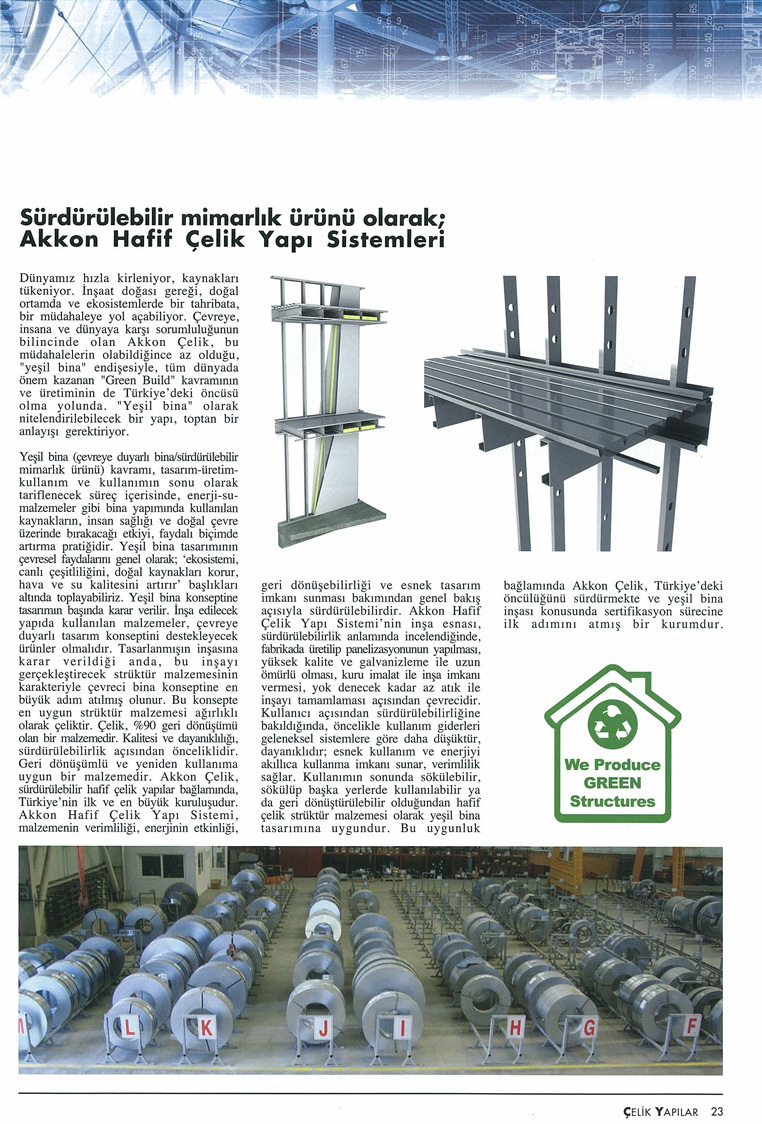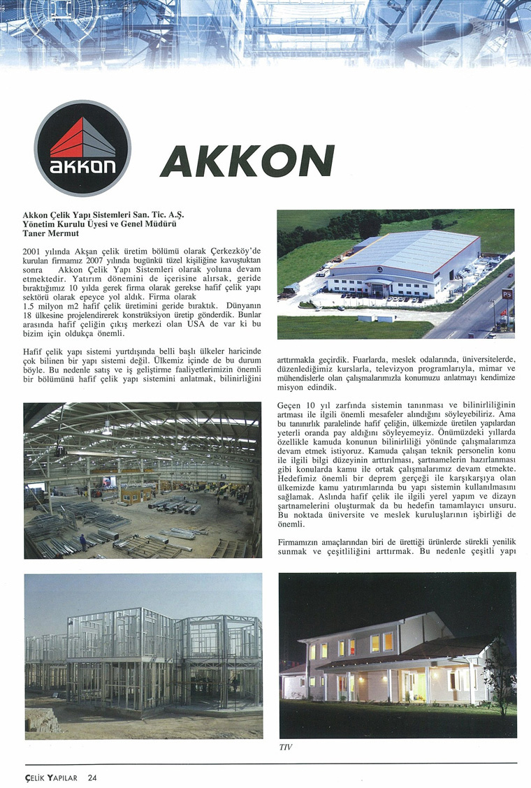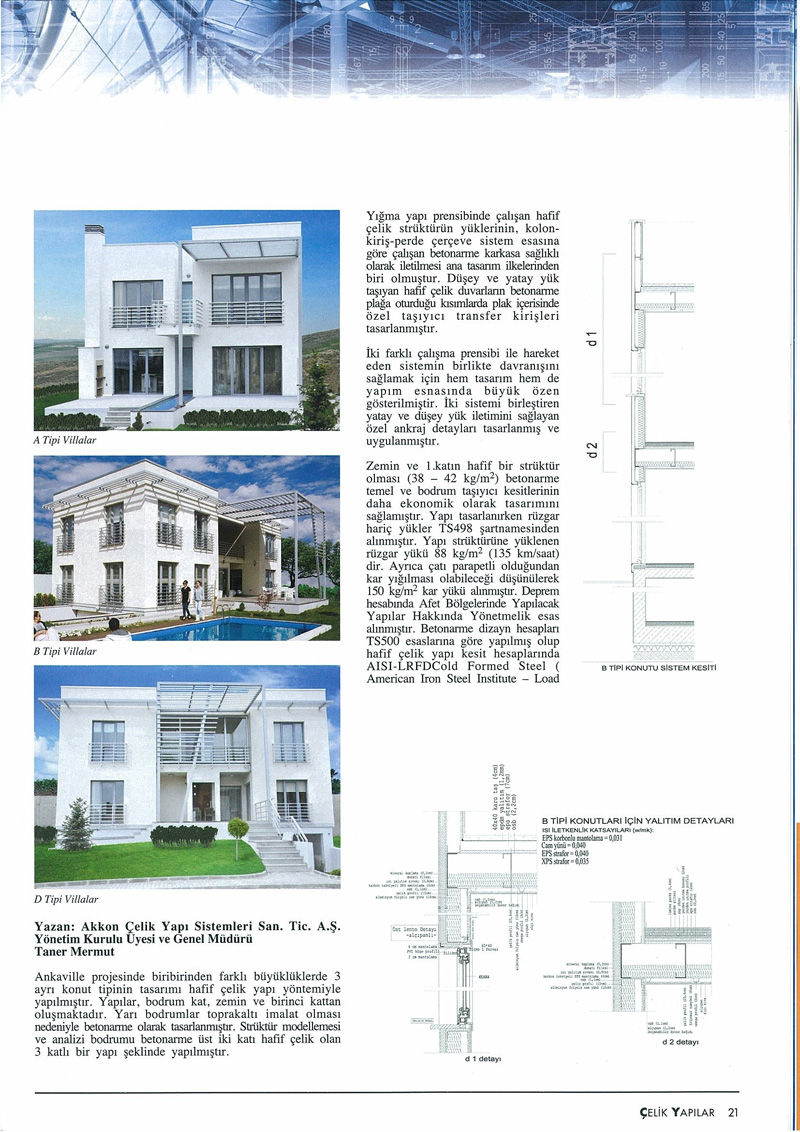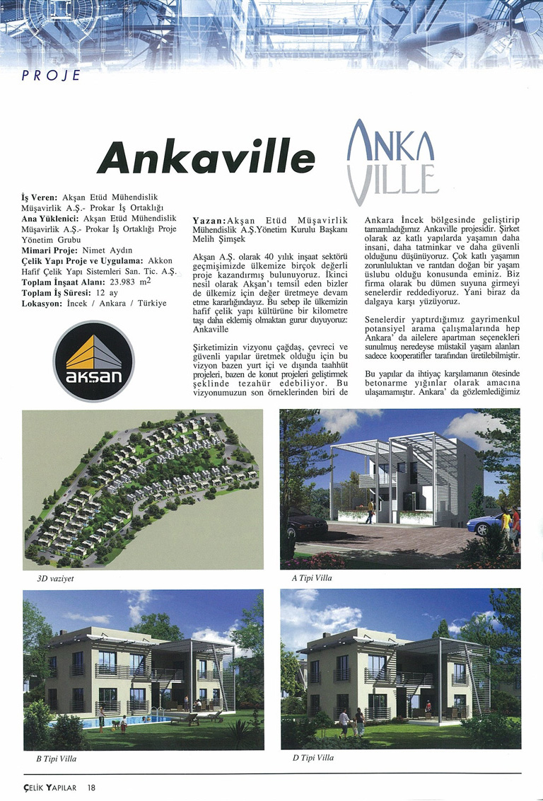 'Ankara'nın Hafif Çelik Villası Ankaville Projesi' haberi Çelik Yapılar Dergisi Mayıs sayısında. (10 Mayıs 2010)